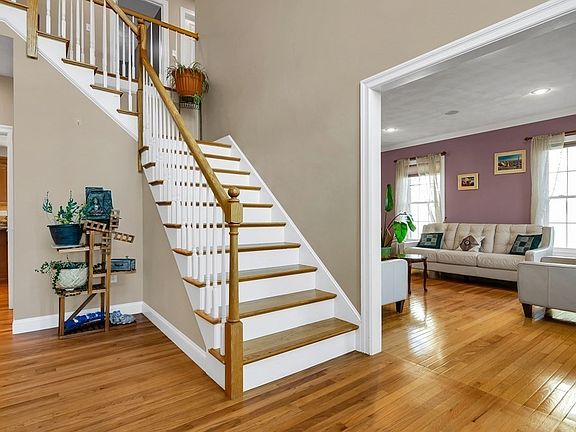 Spacious & beautiful home located in one of Bedford's most sought after neighborhoods. This Prescott Farms colonial features a 2 story foyer, front to back LR & DR, along w/ a private office accessible via French doors. Large & well appointed kitchen features shaker style cabinetry, granite countertops, SS appliances & opens to a large family room w/ gas fireplace & slider out to composite back deck overlooking peaceful yard, conservation land & hiking/walking trails. Second floor features an expansive master bedroom w/walk in closet, sitting area & full ensuite bath. 3 additional spacious bedrooms, full bathroom & laundry room allow plenty of room to spread out. 2nd floor hall overlooks the breathtaking 2 story foyer! Finished walkout basement offers so much potential - media room set up for projector, wet bar, potential for an in-law suite/separate apt. Entire home is wired for surround sound, equipped w/ solar panels that are owned outright (no lease). Convenient to major hwys.