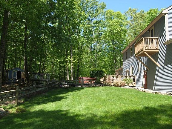 Beautifully manicured 4.5 private acres minutes from Blissful Meadows Golf Course! This property is as tranquil as it gets! Bursts of sunshine through-out this updated home featuring a new gourmet kitchen with granite counters, stainless appliances, wine fridge and double sliders opening to your deck overlooking nature at its best. Bright open concept family room/dining room with cathedral ceilings hardwood flooring & wood fireplace. 1st floor master suite w/large closets incl laundry, hardwood flooring & double sliders opening deck, master bath w/double sinks & steam shower. Two spacious 2nd level bedrooms both w/cathedral ceilings sharing a large full bathroom w/jacuzzi bath - New Buderus furnace, newer roof, central air, central vac, alarm system, fenced yard, hot tub, oversized shed and small barn & fantastic generator that automatically kicks on powered by 2-250 gallon propane tanks. Quick access to Route 146 & 395, Douglas State Park & several area lakes w/public access!