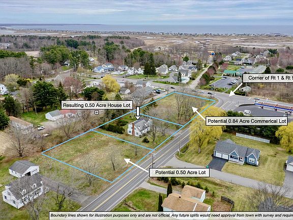 Opportunities like this happen but once in a generation. Nearly two acres on the highly visible corner of Route One and Route 9B in Wells, Maine. General Business zoning. Potential for multiple lots, however currently being sold all together as one parcel. The property consists of a 3 bedroom, 2 bathroom mid-century Cape style home sandwiched between vacant land to both sides. Your next home, investment, business venture or rental opportunity is waiting for you right here in sunny Wells, Maine. Schedule your exclusive showing today.