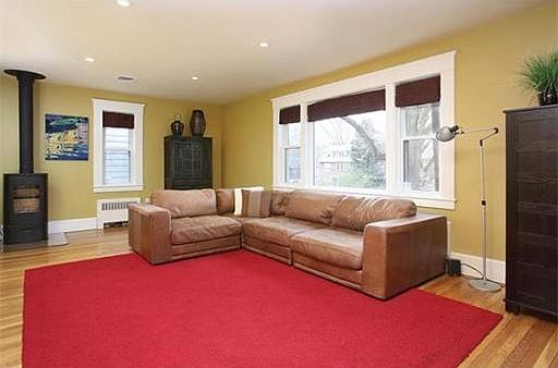 A former 1880's carriage house, this beautiful home has had many updates, most recently with an architect's eye. Filled with sunlight, this home offers wonderful living and entertaining space, outstanding flow, and unlimited flexibility. The contemporary kitchen opens to a large dining room and features stainless appliances, custom cabinets, and recessed lighting. The expansive living room with MØrso wood stove, master suite, office, and newly renovated bath complete the outstanding first level living space. The second floor offers two bedrooms separated by a pass-through closet, and full bath. An unfinished storage area off the third bedroom offers excellent expansion options. The private backyard, accessible from the master suite and office, features beautiful plantings, plenty of play space, and slate patio for dining al fresco. Close to Cabot School, Newton Centre, Newtonville, Mass Pike, Express Bus to Boston and all of the restaurants, shops, and activities Newton has to offer.
