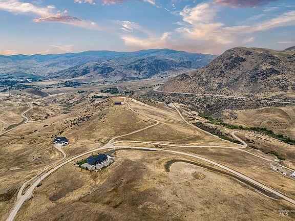 Absolutely spectacular 360-degree view lot awaits your custom dream home build. This awe-inspiring, 52-acre property offers a private and exclusive lifestyle immersed in nature, yet just 15 minutes from the shops, dining, and services of Eagle and Boise. Perched above the Horseshoe Bend valley and overlooking the Payette River, this premier build site delivers year-round vistas and seclusion. Enjoy unobstructed river, valley, and mountain views upon a diverse topography ideally situated for your custom estate home. The fully finished 40x60 dual-RV+ garage rests just below the building pad and features a 40-ft covered patio, full hookups, separate 3/4 bath and utility room with W/D connections and tankless water heater. It’s 2x6 framing with blown-in R-21 and R-39 ceiling insulation provides year round comfort. Build your dream retreat where every sunrise and sunset feels like a masterpiece. This turnkey site is ready for your architect’s plans—come see how exceptional country living can be.