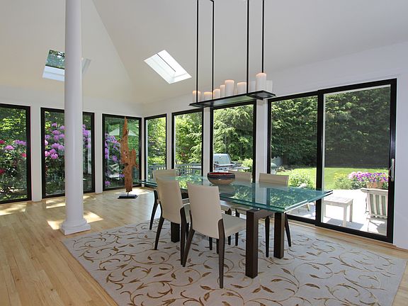 Chic, sophisticated and immensely liveable four bedroom contemporary in pristine condition. Walls of windows, high ceilings and skylights feature sun-flooded living spaces highlighted by a stunning Kitchen designed for the most discerning chef and a fabulous Living and Dining Room perfect for gatherings of family and friends. A generous deck ideal for al fresco dining and relaxation, a third floor Bonus room suitable as a media room, exercise or yoga studio or office, professional landscaping, large shed and a heated driveway are other features of this turnkey property. Privately sited and within walking distance of Scotts Corners.