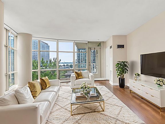 One Of The Largest 2+1s In The City Spanning Nearly 1,300 Sq ft With A 58 Sq ft Balcony. The Expansive Den Offers The Flexibility Of A 3rd Bedroom. Newly Renovated Floors, Bathrooms, With New Appliances And Window Coverings.: The Unit Boasts Southeast Exposure with waterfront views and Flooding The Space With Natural Light Through Floor-To-Ceiling Windows All Utilities Are Included Ensuring A Seamless Living Experience. Residents Enjoy Exclusive Access To One Of A Kind 30,000 Sq ft Super club, Featuring Resort-Like Amenities; Squash, Tennis, Basketball Court, Indoor Pool, Sauna, State-Of-The-Art-Gym, And More. Nestled In A Prime Location, Condo Is Steps Away From The Harbour Front, The Well, Top Schools, Community Center, An 8-Acre Park, Library, Sobeys, Upscale Dining, Rogers Centre, Financial And Fashion Districts. Primary Bedroom Has Walk-In Closet. Immerse Yourself In The Sophisticated Luxurious Health-Focused Lifestyle You Deserve!