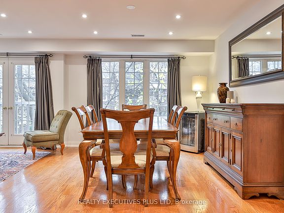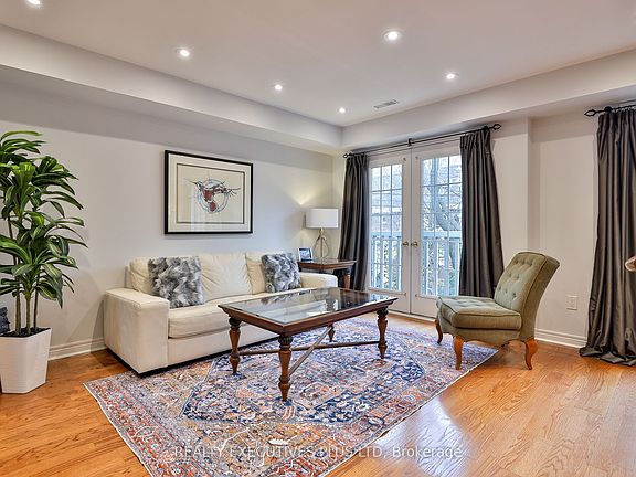 Executive Townhome South of Trinity Bellwoods Park | Steps to Queen West & King West. Nestled on a picturesque, tree-lined street just south of Trinity Bellwoods Park and moments from Queen West and King West's vibrant shops, restaurants, and transit, this beautifully furnished executive townhouse offers approximately 1,850 sq. ft. of stylish living space. Freshly painted throughout with smooth ceilings and recessed lighting, this residence blends sophistication with everyday comfort. The spacious primary suite features a king bed, matching side tables and dressers, his-and-her closets, a linen closet, Juliette balcony, and a luxurious ensuite with a separate shower and soaker tub. The second bedroom with a queen bed, dressers, and two closets includes a cozy reading or office nook with desk and chair. Two large windows fill the space with natural light, and the room is adjacent to a second 4-piece washroom and in-suite laundry-without sharing a wall with the primary suite for added privacy. The open-concept living and dining area is bright and inviting, featuring a formal dining set, hutch, and French doors opening to the quiet street. The adjoining family room includes an entertainment system and walkout to an extra-large private terrace-perfect for al fresco dining with a full patio set and BBQ.A private garage with direct interior access provides added convenience and storage. The main living level includes all principal rooms, a powder room, galley kitchen, and a den with a cozy gas fireplace and walkout to the terrace. The upper level hosts the bedrooms and two full washrooms for effortless living. Fully furnished and equipped, this residence includes internet, television, parking, and twice per month cleaning. The condo corporation maintains snow removal and landscaping. Available for short-term stays (minimum 3 months) or longer-term rentals.