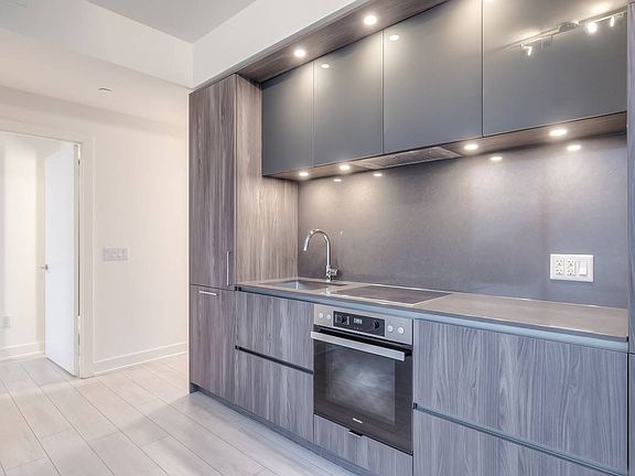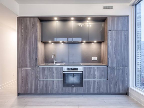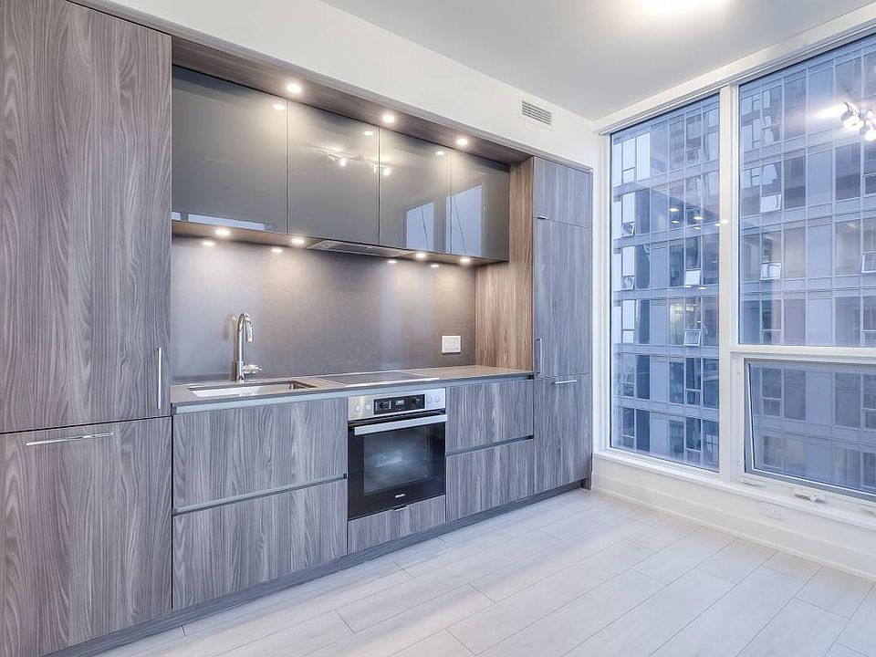 Sleek modern kitchenIntegrated appliancesExpansive floor-to-ceiling windowsAbundant natural lightStunning panoramic city viewsHigh-end luxury finishesIn-suite laundry