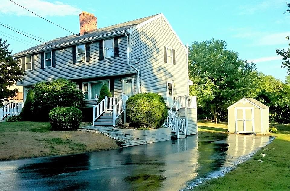 Beautifully maintained Garrison colonial half-house with single-family feel. First floor offers open plan with post and beam living room, rustic brick hearth (to accommodate a pellet stove) and bright eat in kitchen. French doors off kitchen lead to private screened porch overlooking flat, grassy yard - lots of room for entertaining and summer gatherings. Two sunny bedrooms upstairs with shared full bath - potential for home office or re-imagine to create master suite. Plenty of storage in spacious basement and shed. Great location -- minutes to shops, parks and award-winning restaurants of downtown Amesbury. Perfect for all major commuter routes, beaches, lakes and more.