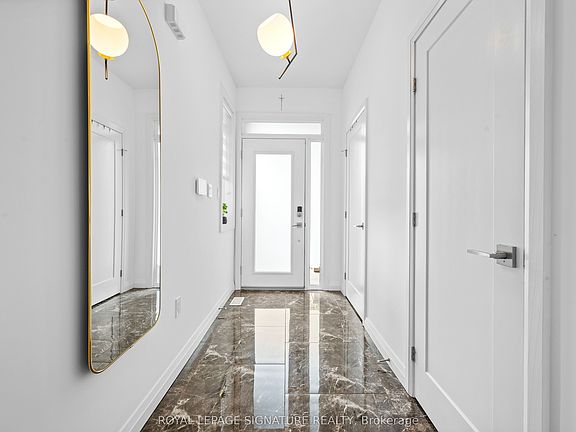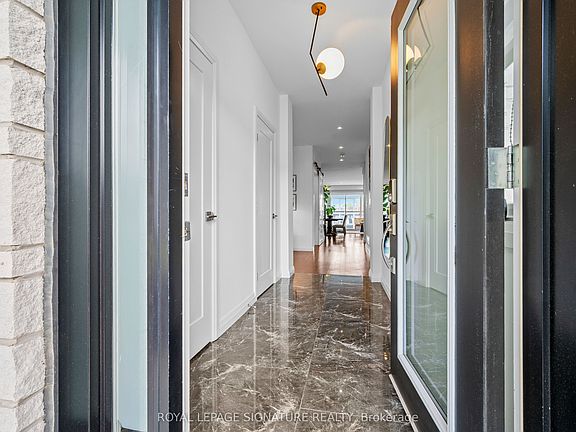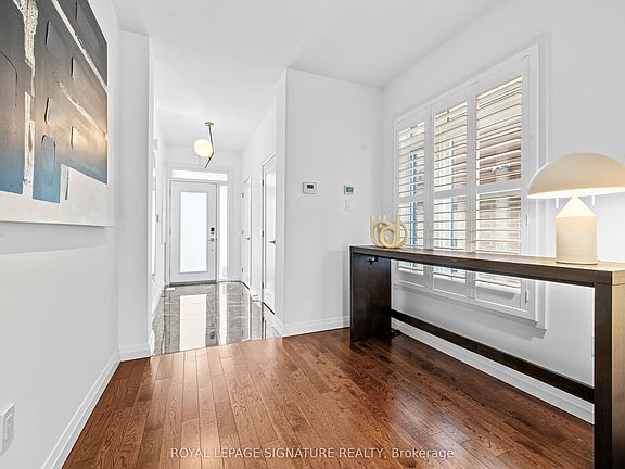 The Ultimate Luxury EXECUTIVE townhouse CORNER Unit (like SEMI) in Stoney Creek by Losani Homes! Welcome to the most coveted floor plan and view in the community! This CORNER UNIT (like a SEMI) with 3 bedrooms, 4baths,HARDWOOD FLOORS all through out, CALIFORNIA Shutters windows all through out, family room in the second floor combines complete privacy with breathtaking, unobstructed views and a serene, private backyard. Step inside and be greeted by a wine cellar to envy, wall-to-wall floor-to-ceiling windows that bathe the open-concept living space in natural light. The chef-inspired kitchen features premium stainless steel appliances, QUARTZ countertops, ample storage, and custom upgrades designed for both style and functionality. The living area exudes warmth and sophistication, anchored by modern fireplace, an elegant feature wall, and designer details throughout. With hardwood floors, soaring 9-FOOT ceilings, pot lights, CALIFORNIA shutters, and SMART HOME technology, every inch reflects luxury living. A striking floating staircase adds an architectural statement. The second floor welcomes you with a bright family room that walks out to the terrace. The master bedroom is elegantly designed for warmth and comfort with walk-in closet and quartz counter 4 piece bathroom. The 2 bedrooms boast light through out. The crown jewel? A private rooftop terrace with sweeping panoramic views perfect for unforgettable starlit gatherings or tranquil morning coffee moments. The finished basement with a full bathroom offers endless possibilities for a guest suite, home office, or media room. This home doesn't just check boxes it sets a new standard for modern elegance. Extras: All ELFs, Built-in Microwave with Range Hood, Built-in Dishwasher, Washer & Dryer, Garage Remote, Fridge (purchased 2022), CALIFORNIA SHUTTERS window coverings, EV Charger.