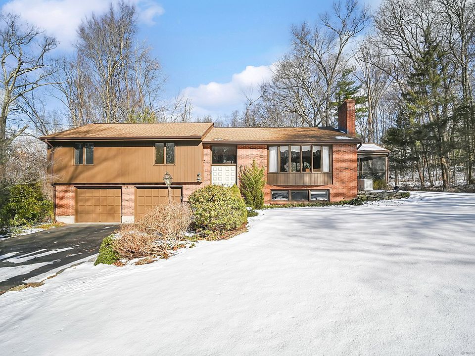 Absolutely Charming and WELL Maintained Split Level Ranch in the heart of Glastonbury. Pride of ownership shines through here. Recent updates include AC, Furnace, Hot Water Heater, Roof (2015) and 22kW Generac Automatic Generator. This oversized home has larger than normal rooms for this style of home - with hardwood floors AND a 3-season sunroom. The updated eat-in kitchen features granite counters, with stainless steel appliances including a gas cooktop, french door GE fridge, built in microwave and double wall oven. There is also a formal dining area with picture window and bench seating - with mid-mod built ins. The living room has a large bay window, fireplace and lots of space for open seating. The primary bedroom features an en-suite bathroom and 2 closets. The guest rooms are spacious and share a full bath with shower tub. The finished lower level adds 790SF and has a large family/rec room with fireplace, built in shelves and LOTS of storage. The laundry room has even MORE storage room with a half bath, and folding area. The oversized two car garage also features a workshop area. Public water hookup is available.
