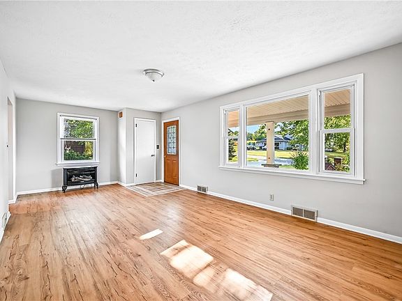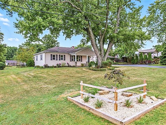 Welcome home to this delightful 3-bedroom ranch, featuring a welcoming covered front porch and a beautifully landscaped front yard. The spacious, updated eat-in kitchen is ideal for family meals and gatherings. Enjoy outdoor entertaining on the covered back patio, overlooking a generous 100' x 200' level lot with a partially fenced backyard and storage shed. A detached garage offers additional perks, including a greenhouse and workshop space—perfect for hobbies or extra storage. Inside, the home has been freshly painted in soft, neutral tones throughout. Laundry is located in the basement, and the washer and dryer are included for your convenience. This move-in-ready home blends comfort, space, and function—all just minutes from the serene Shenango Reservoir.
