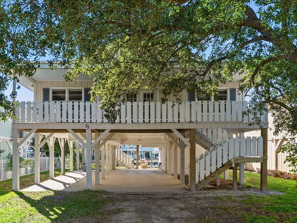 Enjoy outdoor living at its best with covered decks overlooking both the canal and the quiet street — perfect for morning coffee or evening relaxation watching the breath-taking OIB sunrises and sunsets! This raised beach cottage boasts ample storage space underneath for beach toys and accessories and plenty of parking, making beach days and boat trips a breeze. No HOA on this property.