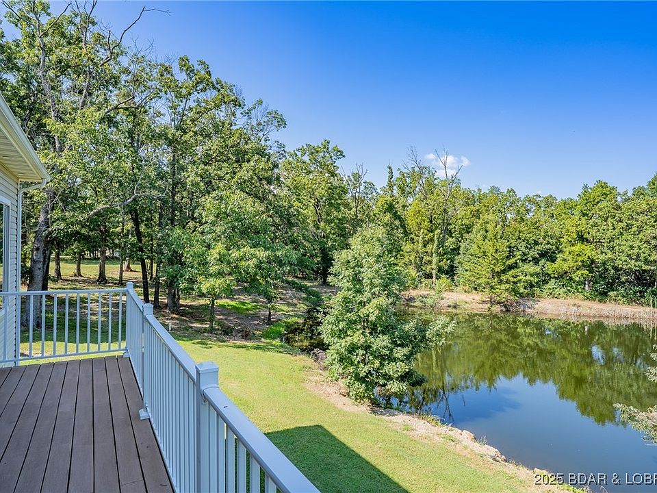 The home offers 3,600 finished square feet with four bedrooms each with their own bath and a half bathroom upstairs. The interior features include luxury vinyl plank and tile flooring, a walk-in shower, coffered/tray ceilings, granite countertops, copper farm house sink and a pantry. The main level provides convenient living with a living room, dining area, kitchen, laundry room, and the primary bedroom with its own bath with walk in closet. The lower level includes a family room, utility room, two additional bedrooms, a bonus room, and two more bathrooms. The exterior is constructed of cultured stone and vinyl siding. The property features a private well and septic system. The detached 30x60 garage/shop includes a loft and a man cave (living space) with heat and air unit. The shop is equipped with electricity, plumbed with toilet and sink with a 200-amp capacity. There is even an RV hook-up at the shop. The property also features a stocked pond and acreage that is both open and wooded. The home is a five-minute drive from Osage Beach. For parking, there is a gravel driveway. The property has no homeowner's association and is located in the School of the Osage school district.