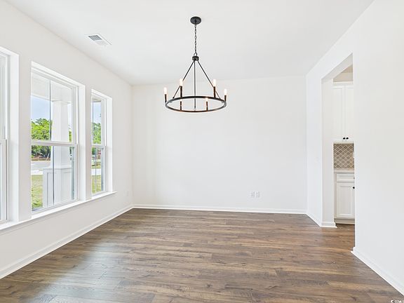 Enjoy the quiet setting of this boutique community of only 57 homes each offering a larger home site. NO "Postage Stamp" lots or "Cookie-Cutter" homes in this upscale low country community! This Hickory Arts & Crafts home features a 3-car garage, 3 Bedrooms, 2 baths, and a formal dining room or flex room. The beautiful kitchen features 42" Linen cabinets, Level 3 Valor Gold Quartz counter tops, arabesque backsplash tile, and Progress Lighting Parkhurst black pendant lights. The kitchen is open to the great room which includes an electric fireplace and lots of windows to capture the generous wooded backyard view and the covered porch. Bedrooms 2 and 3 are privately located in their own wing, tucked away from the living area of this lovely home. The primary bedroom boasts a tray ceiling and REV wood laminate flooring by Mohawk. The Primary Bath features a 5ft walk in tile shower, double vanity, water closet, and a generous walk-in closet. You can add your own pool and or ADU-Accessory Dwelling Unit in this large backyard. Easy maintenance REV Wood laminate flooring by Mohawk is installed throughout the living area of this home. A DOE Zero Energy Ready Home designed and built Energy Star Certified and EPA Indoor AirPlus Qualified with the complete Tyvek house wrap system, spray foam insulation, 2x6 exterior wall construction, and a Broan ERV-Energy Recovery Ventilation/Fresh Air system which means improved energy efficiency and indoor air quality to give you a healthier, and more comfortable home with less air loss, and a lower utility cost. Located just minutes from the Marshwalk, around the corner from Wachesaw Plantation, next door to Brookgreen Gardens, and 3 miles to Huntington Beach State Park. COMPLETION IN APRIL-MAY. *Buyer must complete all requirements described in the Contribution Requirements Addendum. If Buyer does not complete all requirements under the Contribution Requirements Addendum, including closing on the Home with financing from a Choice Lender, then all incentives and discounts, including but not limited to Choice Contribution, upgrade, or option incentives and other promotional discounts, noted in the Agreement will be null and void.