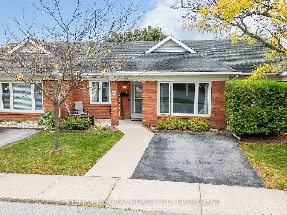 Charming Townhouse-Style Bungalow in St. Charles Village! Enjoy a carefree lifestyle with no grass to mow and no snow to shovel in this beautifully maintained condominium.Step inside to an open-concept living and dining area, perfect for entertaining. The bright kitchen features patio doors leading to a private, partly fenced back patio, ideal for relaxing or enjoying a morning coffee. A cozy front patio adds extra outdoor living space. This home offers 2 spacious bedrooms with large closets, including a primary bedroom that easily fits a king-size bed and features an extra-large closet. Main floor laundry adds everyday convenience. Additional highlights include:Updated windows, Peaceful location adjacent to the recreational canal and trails, short walking distance to the Welland community centre, shopping plaza and Transit. This is wonderful retirement living in a quiet, friendly community. Don't miss your chance to make this lovely home yours!