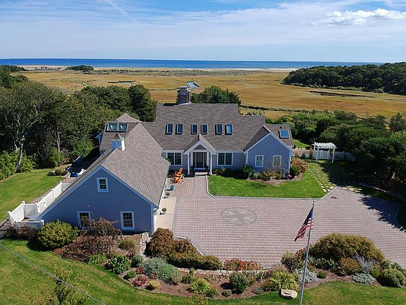 This superb waterfront estate occupies an elevated 1.15 acre bluff overlooking Pochet Inlet and The Atlantic Ocean. Deep, captivating views of unspoiled National Seashore abound from most rooms, numerous private patios, the glassed-in pool area and gardens. An expansive freestanding deck at water's edge offers striking nature views and some of the best birding on Cape Cod. The private outdoor entertainment areas, extensive hardscape and lawn provide a resort ambience. The five bedroom home's cathedral kitchen is integrated with the living and dining spaces, they flow out to a beautiful, screened rotunda for al fresco enjoyment. The architecturally impressive, meticulously maintained home provides multiple common spaces including a second living room with a stone fireplace, a sunny upstairs loft and a finished walkout lower level. The primary bedroom suite offers splendid views, a spa-sized bathroom and double walk-in closets. Numerous amenities include radiant floor heat on two levels, backup generator, motorized blinds, central vac and ac. The coastal color palette and casually elegant decor evoke the Cape experience at every turn. A multi-generational family home.