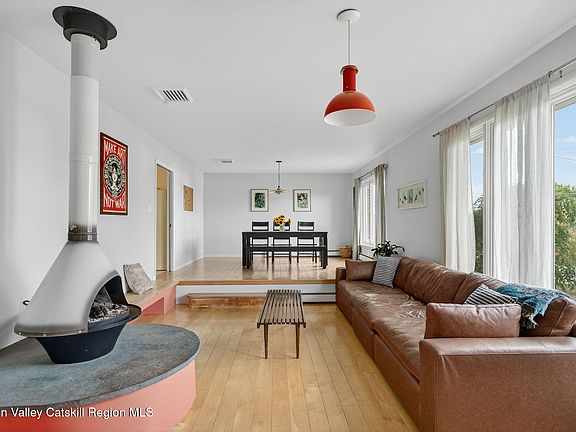 Mid-Century charm meets modern comfort with the best of indoor-outdoor living at 35 Overlook Drive. This 1,891-square-foot ranch offers two bedrooms, three bathrooms, and a seamless blend of thoughtful updates with timeless character. From the moment you arrive, you'll feel the serenity of your own private escape, complete with a hot tub and sweeping views of the Catskills.