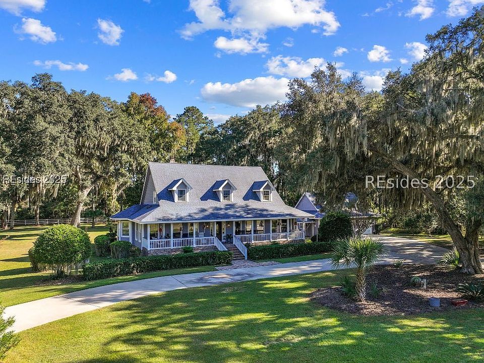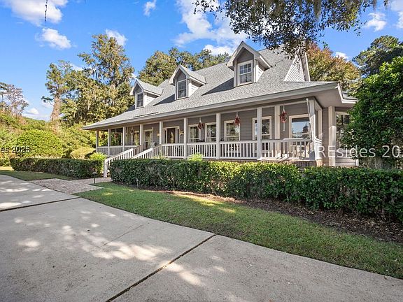 Fabulous estate side Rose Hill property. Quick move in available! This Low Country design with an iconic front porch is beautifully positioned on this homesite of just under 2 acres! The Spanish Moss and Live Oaks create the most gorgeous setting imaginable! The main house features 3 bedrooms and several gathering areas. The primary bedroom is on the first floor. The home has had many recent updates including a fully remodeled and expanded kitchen. New appliances when remodeled. Fully remodeled primary bath with new shower, new flooring and new soaking tub. All bathrooms have been updated. All flooring is new or newer including tile, LVP and carpet. The exterior of the home was painted in 2023. Flexibility exists with potential 3 car garage or 2 car garage with apartment kitchen, bedroom and bathroom. New roof in 2020. Incredibly large backyard with privacy and lots of options! Room for a pool. Rose Hill amenities include 3 pools, tennis, pickle ball, golf, 2 clubhouses, and great deep-water access at Colleton Pointe Landing.