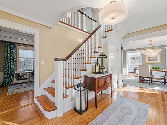 Beautifully updated Colonial in a prime West Side location, featuring classic charm and modern upgrades. This home boasts brand new Marvin windows throughout, ensuring plenty of natural light and energy efficiency. Step into the inviting foyer with period details and French doors leading to the fireplaced living and dining rooms. The kitchen, with high-end Sub-Zero and JennAir appliances, granite countertops, and a spacious peninsula, flows seamlessly into the deck and beautifully landscaped yard—perfect for outdoor entertaining. Upstairs, find four corner bedrooms with great closet space, plus a sitting area. The walk-up attic offers excellent storage and a large cedar closet. The finished walk-out basement includes a modern 3/4 bath, adding additional living space. Outside, the yard features a newly built rear deck and a two-car garage. New gutters and AC. Ideal location just moments to the commuter rail, downtown restaurants, highway access, and Lake Quannapowitt.