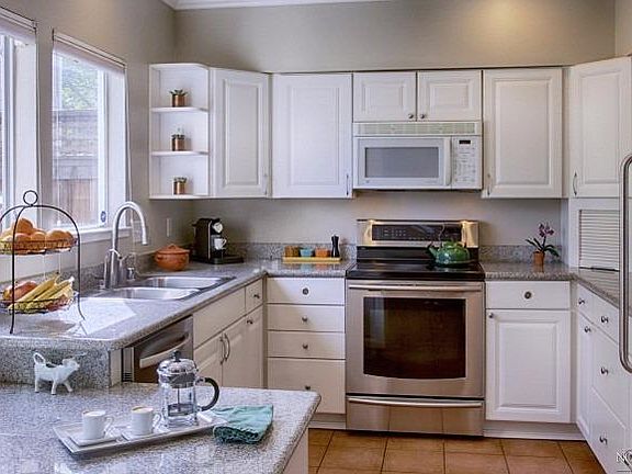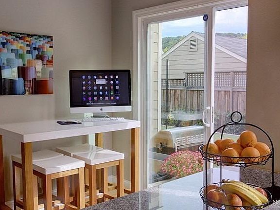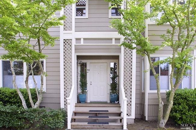 Coveted corner townhome. Front entry opens to foyer flanked by living w/fireplace & formal dining-both looking out to nice HOA park. Hickory hrdwd flrs in public rooms tile in kitchen. Updated eat-in kitchen opens to back yard w/entertaining patio, grassy area, spa & outdoor shwr. Powder room completes main level. Upper level incls master w/peaked ceiling & en suite bath, 2 addtl bdrms & full bath. Cove Elementary/Redwood HS district.
