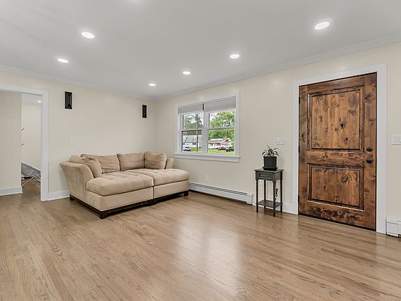 Welcome to this beautifully remodeled ranch-style home, featuring an open floor layout that seamlessly connects the living, dining, and custom-built kitchen areas. Recessed lighting adding a modern touch throughout the space. This home boasts two primary bedrooms, each with modern bathrooms for added convenience. The kitchen is a standout, equipped with custom cabinets, exquisite quartz countertops, an electric cooktop with a stylish hood, wall oven, and a spacious double-door fridge. Step outside to enjoy a brand new deck. New siding. Fenced-in yard, perfect for outdoor activities and relaxation.