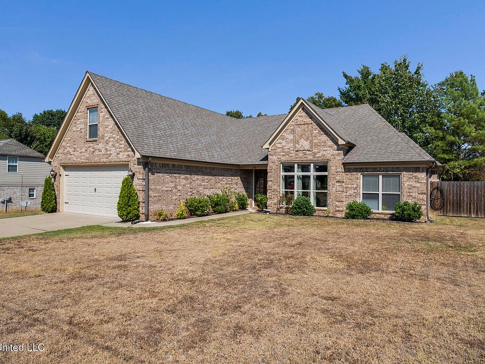 Welcome to this charming 3 bedroom, 2 bathroom home with an upstairs bonus room and double garage, built in 2018 and freshly painted for a truly move-in ready experience. Step inside to soaring tall ceilings and an open-concept layout that seamlessly connects the living room, dining room, kitchen, and breakfast nook. The dining area is filled with natural light from the tall windows, creating a bright and welcoming space for family meals and entertaining. The spacious primary suite offers a true retreat with a large bedroom and a beautifully appointed bath. This home is located just a short walk to Byhalia Elementary, Middle, & High schools, which offers ultimate convenience! With its modern design, thoughful layout, and fresh updates, this home is ready for you to make it your own. ASSUMABLE VA LOAN AT 5%!!!