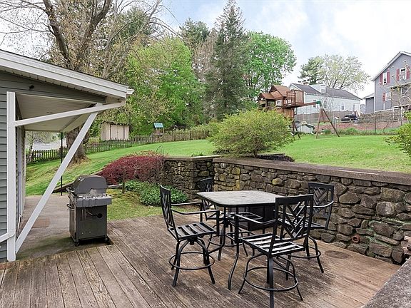 - Exterior features: Deck, Deck - Wood, Rain Gutters, Storage, Stone Wall