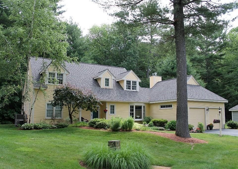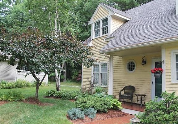Fall in love, guaranteed. One of Huckins Farm's largest properties, this freestanding Ashview model is a move-in delight with generously sized rooms, open flow, streaming sunlight, and RELAXATION in abundance. With over 3,100 sqft. of space, this home boasts 3 bedrooms and 2½ baths -- including the first floor Master Suite with a wall of mirrored built-ins, walk-in closet, and jacuzzi bath -- cathedral ceilings, skylights, and a two-car garage attached. The grandest surprise, a huge family room with French doors and views of the patio and conservation lands. Tell your heart this is home!
