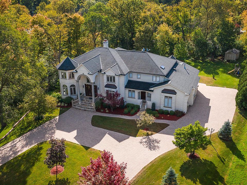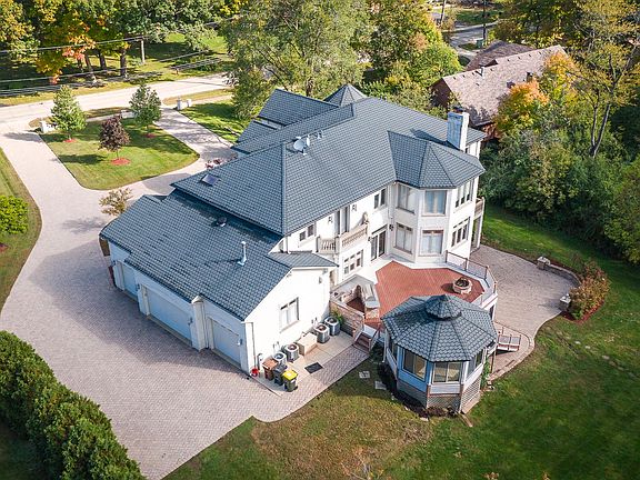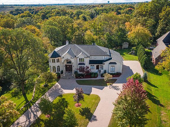 This stately executive home sits on over an acre of land! Built with the highest quality materials, from millwork, to kitchen cabinets, to flooring, to doors, no expense was spared by the current owners. Upon entering the two story foyer with double door entry, you are presented with an impressive open winding stair case leading to both the upstairs and the basement. Enormous two story family room with wet bar and wine fridge off the chef's kitchen with second staircase leading to both the upstairs and lower level is perfect for entertaining. First floor also boasts a full sized bedroom with attached bathroom that is perfect for an in-law suite or first floor office. Gorgeous hardwood throughout entire home. Magnificent master bedroom suite with walk-in closet and changing room, jacuzzi and steam shower. Extremely generous bedroom sizes with trey ceilings, full baths and an additional jack-and-Jill bath. 10 foot ceilings on the main level and 9 foot ceilings throughout including the finished walk out basement with heated floors complete with second full kitchen, large wet bar, custom wine room with the capacity to hold over 500+ bottles of wine, enormous bedroom and full bath. Gorgeous brick paver circular drive and patio! Heated front stairs. Custom deck and gazebo with full outdoor kitchen to entertain and enjoy great views! Be ready to be impressed!