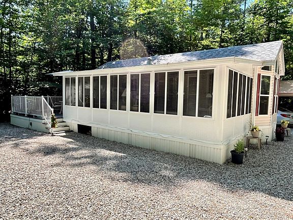 Welcome to Lake Forest Resort, one of Wakefield's best kept secrets located along the sparkling shores of Great East Lake. Lake Forest Resort is a mixed-use condominium campground that welcomes residents age 50+, golf lovers and outdoor enthusiasts. Set on 100 wooded acres, Lake Forest offers well-spaced sites with privacy, as well as recreational and social activities for adults. 35 Pine Road is home to a beautifully maintained park model that has been well cared for. Inside, you will find vaulted ceilings, large windows providing tons of natural light, living/dining/kitchen area, full bath, bedroom with plenty of storage, and an attached multipurpose room. Outside, you will find 2 car ports, a storage shed, BBQ & dining area, fire-pit and a new 12' x 13' Trex deck on the back of the unit. The roof and a/c unit are fairly new-4&5 yrs. 35 Pine Road is being sold fully furnished so all you need to do is unpack and enjoy! Golf enthusiasts will love the Cayman Golf Course which winds through beautiful tree lined fairways adjacent to the RV and cabin sites. LFR has two miles of well-kept and shady winding roads ideal for walking or biking. LFR offers 200' of private waterfront. Here you will enjoy the extensive seating area to take in the spectacular views of Great East Lake, conversation with fellow campers and the calls of the local Loons. There is a private boat launch, canoe/kayak storage racks and day docks. The campground is gated and assisted showings are required.