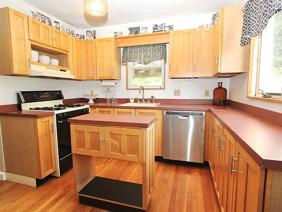 You're going to love this beautifully updated Cape in a highly sought-after Auburn neighborhood! The oversized living room features gleaming hardwood floors, while the dining room offers a custom built-in and atrium door leading to a private cocktail deck. A sun-splashed maple shaker kitchen with recessed lighting is perfect for cooking and entertaining. Two generous first-floor bedrooms boast hardwoods and ceiling fans, plus an updated full bath with ceramic tile. The expansive second level offers wood flooring and pine paneling, ideal for a home office or additional bedroom space. The finished lower level includes a playroom with waterproof flooring. Major updates: low-maintenance vinyl siding, vinyl replacement windows, newer gas boiler, on-demand hot water, 200-amp electrical panel, garage with opener, and freshly paved driveway. Set on a massive 11,000+ sq ft yard, just minutes to shopping, schools, and major highways for easy commuting!