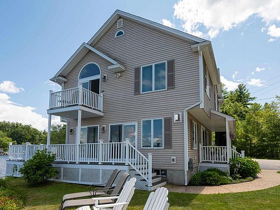 Built in 2010 this waterfront home was designed for enjoying lake life from its wrap around deck sitting on the waters edge with SunSetter retractable awning to the double glass sliders providing a water view from the whole 1st floor to the 2nd story master balcony overlooking the lake you can enjoy the water from many perspectives. With approximately 200ft of waterfrontage you are offered waterfront lawn, private dock and a crescent moon shoreline. Central AC cools the interior, wood & tile floors are throughout with a turned wood staircase leading to the 2nd floor bedrooms. The Master bedroom with private en suite, 2nd level full bath and two more bedrooms round out the 2nd level floor plan with cathedral ceilings and lots of natural light. This property is turn key and ready for a new owner to enjoy.