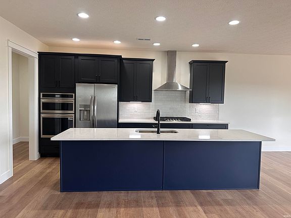 Private officeThoughtful design detailsThoughtfully designed residenceOpen-concept layoutBold navy islandSpacious kitchen