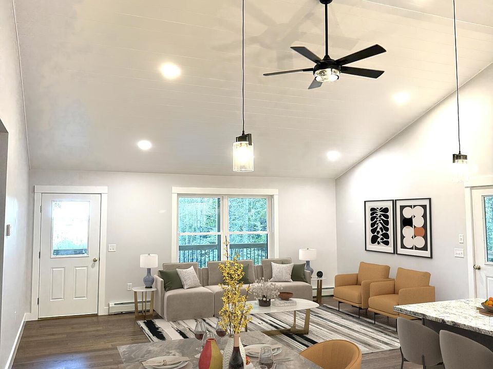Discover this stunning new home designed for both comfort and style. The kitchen shines with timeless white shaker cabinets, granite countertops, a spacious center island, and a large pantry—perfect for everyday living and entertaining. The open-concept layout with cathedral ceilings creates a bright, airy atmosphere, complemented by engineered hickory and tile flooring throughout. Step outside to enjoy seasonal pond views from the wraparound deck, or relax on the poured concrete patio below. The walkout basement offers incredible potential—ready to be finished for even more living space. Just a short stroll away, the association's common area provides access to beautiful Saturday Pond. Spend your days swimming from the dock, launching a boat, or gathering around picnic tables and a cozy fireplace. Best of all, you'll enjoy all the fun of waterfront living—without the waterfront taxes. Quality finishes and quality built.