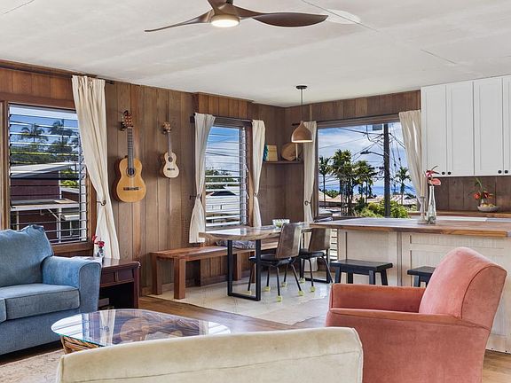Recent updates include upgraded electrical and plumbing systems, a fully renovated kitchen and downstairs kitchenette, all-new appliances and fixtures, interior paint, refinished original hardwood floors upstairs, new vinyl plank floors downstairs, and a new gated entry with secure fencing—ready for keiki and pets alike.