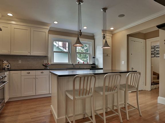 Walk to the coveted Muraco School from this four bedroom, two bath colonial.Level one features a kitchen with granite counters, center island, stainless steel appliances and wine fridge, dining room with corner cabinet and crown molding, living room with beamed ceiling and fireplace, office, family room leading to a patio and bedroom and adjoining full bath and laundry. The second level has three bedrooms and full bath. Need another bedroom? Another office? The attic level provides expansion possibilities. The entire family will enjoy the spacious lower level playroom and tremendous storage space.Other amenities include: Surround Sound on lower level, first floor and yard; alarm system, sprinkler system with automatic timer, fenced yard, one car garage, off street parking for two cars, close to Fells Conservation Area.