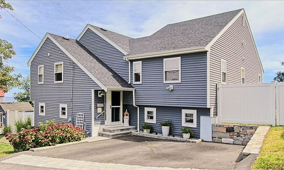 This exceptional home offers a vacation lifestyle every day! Bask in the spectacular, panoramic ocean views from nearly every room. Situated on Strawberry Hill, this property boasts one of Hull's most sought-after vantage points. The main bedroom's private deck and a massive private patio offer ideal spots for relaxing and soaking in unforgettable sunrises and moonrises over the majestic Atlantic. Soothing sea breezes flow across the patio as you take it all in. Inside, the spacious kitchen is a chef's dream, featuring a large island, a breakfast nook, a butler's pantry, and beautiful white soft-close cabinetry with quartz counters. The kitchen flows seamlessly into the open living and dining rooms, creating a comfortable gathering space for family and friends. Sliders in both the living room and kitchen provide easy access to the patio. The main suite includes a private bath, walk-in closet and a private deck; The laundry is on the 2nd floor. *NO FLOOD INSURANCE*