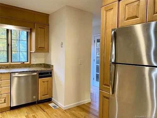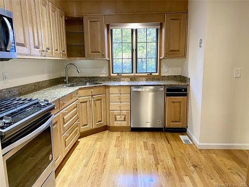 Great unit & great location This Townhouse in the quiet and desirable Quarry Village offers 2/3 bedrooms, 1-1/2 baths, 1,440 sq. ft. with an additional 720 sq. ft. in the finished lower level, 1 car attached garage and plenty of guest parking in complex The 1st floor offers a remodeled kitchen with granite counters & stainless steel appliances, a formal dining room w/ french doors out to your private deck, living room with window seat, half bath and access to garage. The 2nd level has a large primary bedroom w/ huge walk-in closet, an additional bedroom w/ large closet with great closet system, and an additional room perfect for bedroom or office, full bath with double sinks, granite counter & built-ins and additional huge walk-in closet in hallway The lower level is partially finished with a laundry area and also has unfinished space for storage. Minutes from I-84 & I-691, close to restaurants, shopping & Farmington Canal Walking Trail No pets, credit/background check required, two months security + 1st month rent required at lease signing.