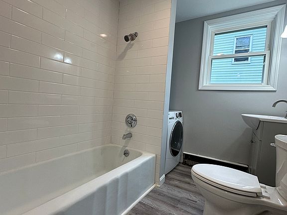 Renovated first floor unit 1 Bedroom, (bedroom is on smaller side) 1 bath apartment. The kitchen has stainless steel appliances, granite countertops, and maple cabinets. High-end lvp flooring. This unit comes with a washer dryer unit and 2 off street parking spaces. A dream apartment! Only 5 minutes from the T Commuter Train. EXCELLENT CREDIT A MUST and NO SMOKING!! Owner pays for Sewer/Water only. Tenant pays for heat, and electric. 2 Parking spaces. Owner pays for water/ trash/ landscaping