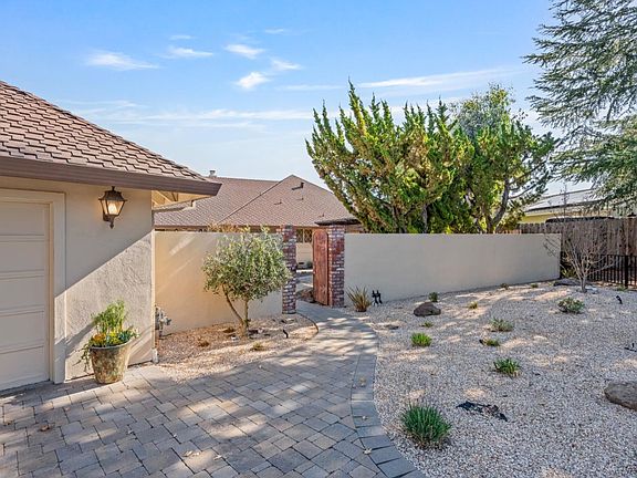 Driveway consists of decorative concrete pavers which are carried into the private front courtyard and around home. Pavers have illuminated lighting perfect for nightime use. Backyard has several fruit trees, numerous roses, sitting areas and plenty of room for a pool. Don't miss this oversized lot with gorgeous mountain views from the backyard!