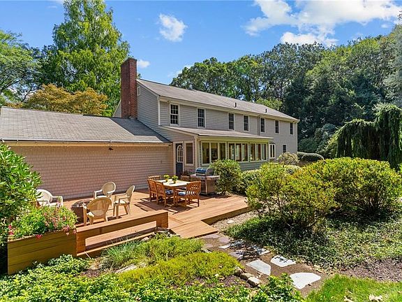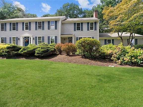 Classic Moorehead Colonial located in desirable Cindyann! This home offers 4 beds,2.5 baths, hardwood flooring and 1.62 acres of gorgeous grounds with mature landscaping, stone walls and has been maintained and thoughtfully updated throughout the last 26 years of ownership.The first level has a front to back family room with built in bookcases, fireplace and connects with a newer sunroom tastefully done with a vaulted ceiling.Outside the sunroom is an expansive trex deck.The eat in kitchen with granite counters, kitchen island, stainless appliances and birch cabinets is right around the corner from the family room.Off the kitchen you will find a laundry room, large front to back living room and dining room. Choose from either of 2 staircases on opposite sides of the home to make your way to the second level.The primary suite is expansive to include 2 walk in closets with shelving and a fully updated bathroom with double sinks, large tiled shower stall with glass-all tastefully done.Down the hall are 2 more generous bedrooms, large full bath with privacy door for the shower and toilet area.The 4th bedroom runs from front to back with a fireplace and is currently being used as an office and game room complete with a pool table that remains with the home. The basement includes a common area ,workout room, storage and utility. The closet space in this home is endless. Close to TF Green International airport, Amtrak, South County beaches and 1 hr to Boston! Don't miss this one!