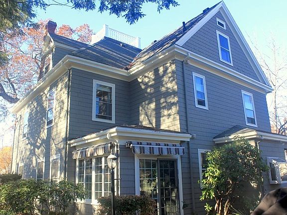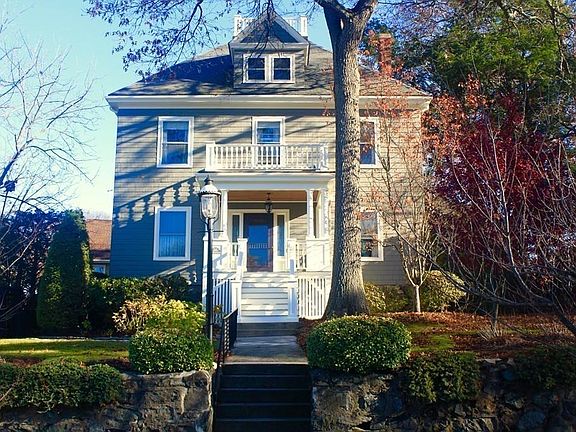 Historic design and modern luxury intertwine in this grand Hip Roof Colonial with Victorian flair. Elegant wooden pocket doors usher you from the foyer into the fireplaced living room and then again into the stately dining room complete with adjoining sunroom and wet bar. The award winning gourmet chef's kitchen (contractor of the year and featured in the 2014 Melrose Kitchen Tour) boasts a Wolf gas range, double ovens and indoor grill. Beautiful stained glass details, exquisite woodwork and dual staircases invite you home to Renwick. All 3 bathrooms have been renovated and the entire exterior was repainted in '16. 4 bedrooms, an office and a bonus room (unheated) allow plenty of space on the 2nd and 3rd floors. The top floor features a ladder to the widow's walk with stunning views. Enjoy the outdoors in a serene, professionally landscaped yard and patio with an inground sprinkler system. Less than 1/4 mile to the Melrose Highlands Commuter Rail, this home is awaiting its next steward