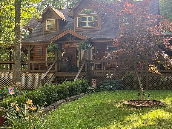 The yard is partially lawn and a lot of hardwoods that give ample shade during the summer months. There is a large natural stone firepit and a lean too for outdoor entertainment.