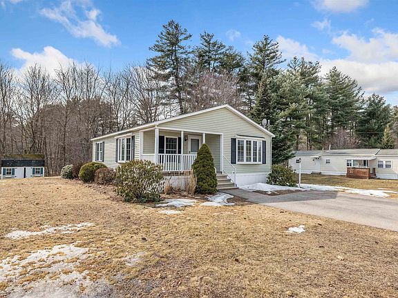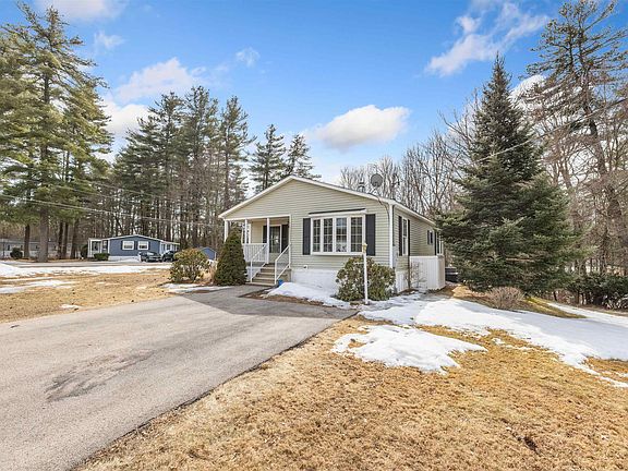 Charming, Fully Renovated Home in River Pines! This stunning two-bedroom, one-bath home has been completely updated with a bright, modern design. Vaulted ceilings and an abundance of windows create an open, airy feel, filling the space with natural light. The bathroom is a true retreat, featuring a double vanity, stone-finish floors, and a luxurious bath/shower with a stone-finish surround and skylight. Sleek black finishes throughout add a contemporary touch. The primary bedroom offers a spacious, lighted closet, and the bright kitchen features white cabinets, a butcher block countertop, and stainless steel appliances, all complemented by a stylish subway tile backsplash. The large bay window floods the space with natural light, creating a welcoming atmosphere. Enjoy the convenience of an eat-in dining area and in-unit laundry. This home sits on a large corner lot, with a cozy three-season porch overlooking a peaceful wooded area and brook. River Pines is a wonderful, family- and pet-friendly community along the Nashua River, offering fantastic amenities, including a Recreation Hall, Swimming Pool, Boat Launch, Fitness Center, and more. Maximum occupancy is four people, with a two-pet limit. Park approval is required, and there is a non-refundable $25 application fee. Easy to show—schedule a showing today!