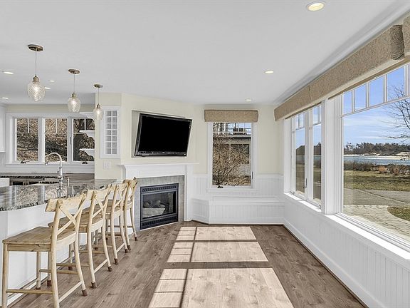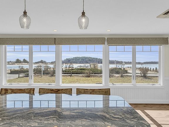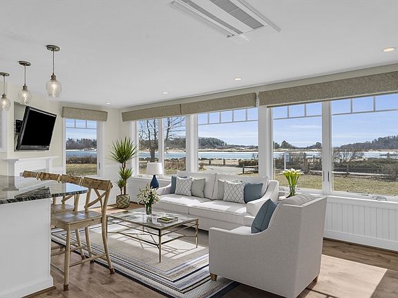 Welcome to paradise- where every day begins with a breathtaking sunrise over Plum Island Sound. This turn-key waterview beauty in Little Neck offers an idyllic lifestyle with unparalleled views. The open-concept first floor boasts easy to maintain floors, full bath, island with granite counters and stainless appliances, creating a perfect space for entertaining or quiet evenings by the gas fireplace. The additional sitting area offers flexibility as an office with a convenient Murphy bed for extra guests, ensuring comfort and flexibility. Upstairs, the primary ensuite bedroom is a haven of luxury with radiant floor heating in the tiled bathroom, a walk-in closet with washer/dryer and views as you enjoy your morning coffee on the deck, soaking in the serenity of beach front living. The guest bedroom with ensuite also offers a built-in Murphy bed and access to the deck, allowing guests to wake up to unobstructed views of the Sound. Experience tranquility and elegance at "Searenity"