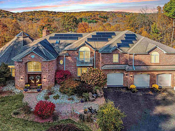 Beyond Awesome!This stunning, detailed 5 BR, 5.5 Bath estate is like a private resort, offering approx 7,000 sf of luxury living on 6.8 acres with breathtaking mountain and sunset views. Designed for comfort and elegance, enter through a grand foyer, featuring hydronic heated floors, a chef's kitchen with a gourmet Viking range and a center island complete with sink and wine refrigerator, plus 4 fireplaces-3 wood-burning and 1 gas. The primary suite boasts a private balcony, gas fireplace, 3 walk-in closets, and a spa-like bath with a jetted tub plus a shower/steam room. 3 additional bathrooms also feature jetted tubs for ultimate relaxation. The walk-out lower level is an entertainer's paradise with a wine cellar, full wet bar, media and game rooms, sauna, steam room, gym, and stone fireplace. This space seamlessly extends to outdoor patios including 2 with fire pits, perfect for gatherings or enjoying the hot tub.This energy-efficient home includes solar panels with 24 hrs of backup electricity, an electric fast car charger, and a 3-car attached garage with ample space. The property's potential for farm assessment adds unique versatility regarding property taxes. Located in a town known for top-rated schools, here you are surrounded by nature, yet close to shopping, restaurants, and major highways. This estate combine serene surroundings with unmatched privacy, luxury, and comfort.Schedule your private tour today to experience the lifestyle this extraordinary home offers!