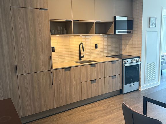 Welcome to this 2-year-new, fully furnished 2+1 bed condo at the downtown waterfront! Ideal layout with a versatile denperfect as a home office or 3rd bedroom. South-facing unit filled with natural light in a quiet, friendly neighborhood. Steps to the historic Distillery District, Queen & King St E, shops, cafes, restaurants & more. Daily essentials nearby incl. supermarket & bank. Easy access to Financial District & major highways. Enjoy top-tier amenities: 24-hr concierge, gym, games/media rooms & stunning rooftop patio with panoramic city views.