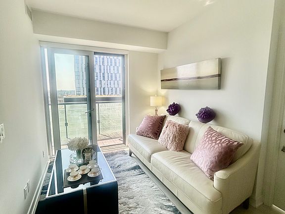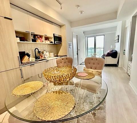 Welcome to this top floor luxury suite with south facing unobstructed view of DT Toronto in Distillery district. One of the largest two bedrooms plus den with spacious balcony to enjoy CN tower, lake view, parks, rooftop garden, and holiday fireworks view. Modern Scandinavian style natural light laminate flooring throughout, floor-to-ceiling windows, and elegant Shangri-La blinds give the suite a relaxed, bright, cherish feel. Modern open concept kitchen with stainless steel appliances, B/I shelves and cabinets, floor-to-ceiling glass door walk out to the balcony. Spacious den is perfect for media or home office. The primary bedroom can fit king bed, with 4 pcs en-suite bathroom, walk-in shower with build-in Italian designer shelves and shower head, and large mirrored walk-in closet. Second bedroom is equally spacious and sunny with mirrored walk-in closet. Hi-speed internet, one underground parking, one locker is included in rental price. St. Lawrence market, financial & entertainment district, sugar beach, cherry beach, royal yacht club, George Brown medical residence, parks, bike trails are all at walking distance. Two minutes' walk to several bus stops to union station and subway and 5-minute drive to DVP and Gardiner. Large rooftop terrace with community BBQ and rooftop party space, fire pit, Gym equipped with modern amenities, Yoga studio, party room, hobby room, co-working space, dedicated bike storage room, theater, guest suite, visitor parking. Move in today to enjoy this one-of-a-kind suite offering an unbeatable lifestyle!