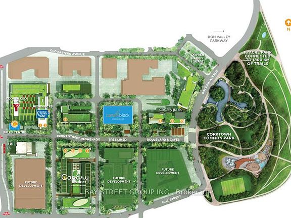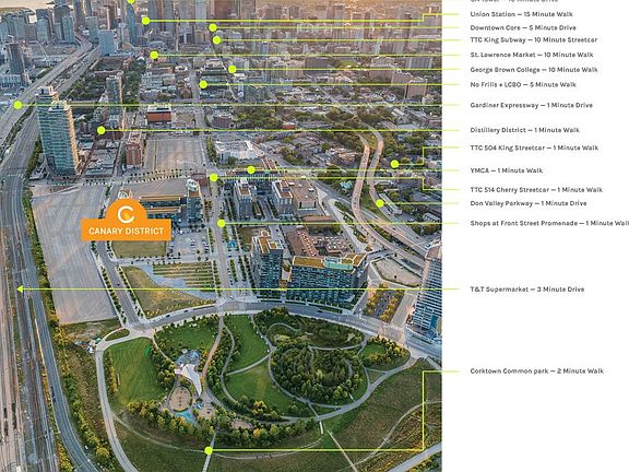 Welcome to this sunny spacious penthouse suite with south facing unobstructed view in the prime Canary District. Close to financial district, but away from all the hustle & bustle with a 10-acre park, bike trails, beaches, royal yacht club, St. Lawerence market, distillery area all at walking distance. One of the best split layout two bedrooms plus den penthouse units (incl 1 parking, 1 locker) with total 970 sqf including a 130 sqf balcony to enjoy BBQ, sunbathing, and sunset view. Top floor elevated ceilings not only feel more spacious & private, but also boost rooftop garden, fireworks, CN tower, park & lake view directly from your own balcony. Open concept kitchen with stainless appliances, floor-to-ceiling window door walk out to the balcony. Spacious den is perfect for media/home office/infant room. The primary bedroom has an 4 pc ensuite bathroom, walk-in shower, large mirrored walk-in closet. Modern Scandinavian style natural light laminate flooring, floor-to-ceiling windows, and elegant Shangri-la blinds give the suite a relaxed, bright, cherish feel. A morning walk around the parks with your dogs or loved ones, or walk downstairs to Marche Leos/ Region, or dinning at the excellent restaurants around. Large rooftop terrace with community BBQ, fire pit, Gym, pet wash room, child playroom, party room, hobby room, co-working space, bike storage, theater room, guest suite, visitor parking. Hi-speed internet is included in maintenance fees by Beanfield. Move in now to benefit from prices rising in the near future as the East Harbor is the most significant development being planned in Toronto. The site owned by Cadillac Fairview with an enormous scale of over 45 acres footprint, larger than Yorkdale Shopping Centre & right at downtown Toronto and waterfront community. Own it today to enjoy this one-of-a-kind suite offering an unbeatable lifestyle.