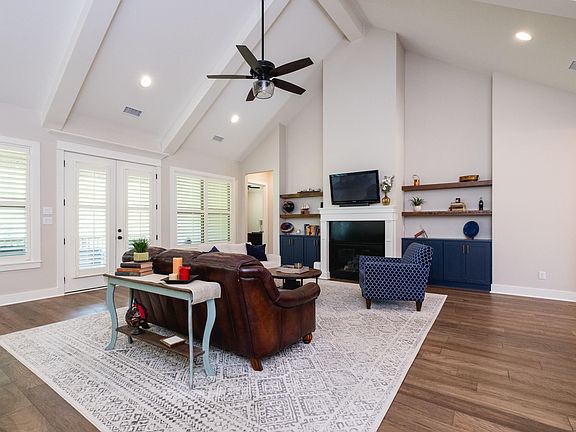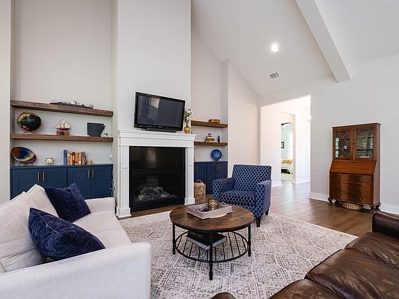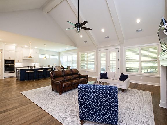 Wonderful like new 2022 brick one level with plantation shutters and a smart, open layout. Beautiful wood floors in living areas, carpet in bedrooms, and tile baths. Vaulted great room with gas fireplace, built-ins, and French doors to a covered deck overlooking green space. Chef’s kitchen features a large island with seating, gas cooktop, wall ovens, walk-in pantry, and a dining area that fits a large table within the open space. Spacious primary suite includes a spa style bath and oversized closet. Two guest bedrooms share a bath; a third is set apart near another full bath, ideal for guests or an office. Hallway storage closets, family sized laundry, and drop zone from the two-car garage with walk up attic storage. Under-house storage adds even more space. Come see!