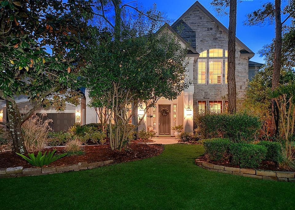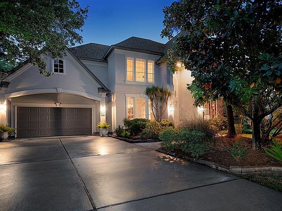 Stunning Eaglebrook custom home nestled on a true greenbelt lot in Alden Bridge! Walking distance to exemplary schools, parks, Alden Bridge shopping center & fishing in the lake only 300 yards behind the property! Open and airy floor plan with stunning hardwood floors, Plantation shutters, crown moulding, high ceilings, built-in speakers inside and out, abundant storage and huge windows provide natural light throughout! Gorgeous island kitchen with granite counters, double oven, gas cooktop and breakfast bar overlooks sunny breakfast room & den with gas fireplace; both formals; handsome study with built-ins and French doors; large bedroom downstairs with full bath - could be 2nd master. Master retreat with spa-like bath plus 2 spacious guest bedrooms and game room upstairs; three car tandem garage; private and serene backyard with extended covered patio & decking, sparkling saltwater pool/spa with Pebble Tec and plenty room for play and entertaining!