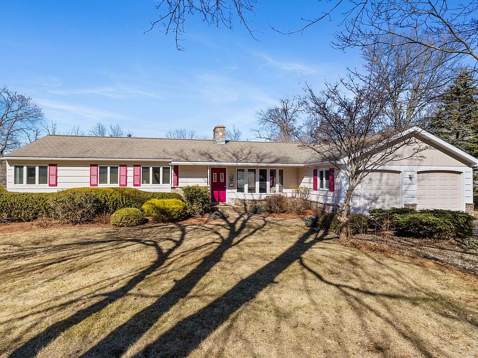Discover a charming ranch-style home featuring 3 spacious bedrooms and 2 full baths, is ready for its next owner. With a little TLC, this residence could become your dream home. Step into the inviting living room, where a striking stone fireplace and a graceful bow window set the stage for relaxation, seamlessly flowing into the dining area. The kitchen, complete with Corian countertops, opens into a great room boasting cathedral ceilings, 2 skylights, a wall of windows, and a slider to the deck-perfect for soaking in the tranquil backyard views. The peaceful scenery, seasonal views of the pond can be enjoyed from the great room, dining room, and the family room, creating a quiet peaceful retreat. The primary bedroom offers corner windows, ceiling fan, and a private full bath. In addition, two extra bedrooms provide ample space; one of these has been thoughtfully converted into an office space. A convenient first-floor laundry adds ease to your daily laundry routine. The partially finished, heated walk-out lower level offer additional potential living space. Built with steel I-beam construction, this well-crafted home also includes central vacuum, hardwood floors, a two-car garage, and city sewer-all within the coveted Lake Street School District. Outdoor enthusiasts will appreciate its close proximity to the Rail To Trails, perfect for hiking and enjoying nature. Don't miss your chance to see this unique gem in person-this opportunity won't last long! PROPERTY IS SOLD AS IS.